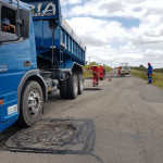 O serviço consiste na retirada de borrachudos do pavimento, que é um desnível no asfalto, e do material úmido em alguns pontos da rodovia, além do melhoramento desses locais com a utilização de brita graduada, compactação e recomposição da camada asfáltica.